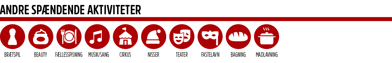 Vi spiller også brætspil, afholder fællesspisning, laver cirkus, spiller musik, er ude som nisser, laver beauty produkter og meget mere.